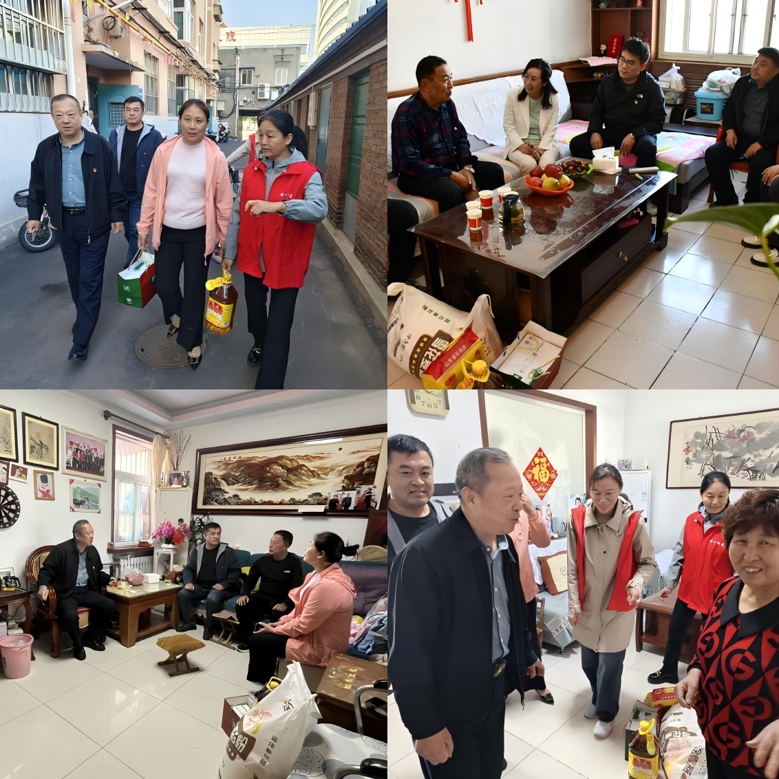 上午,我院一行与社区工作人员一同走访了辖区部分退休老干部、热心居民等5户家庭,与老人们亲切交谈,嘱咐老人保重身体,并为他们送去了米面油等节日慰问,用实际行动表达对老年人的关怀。