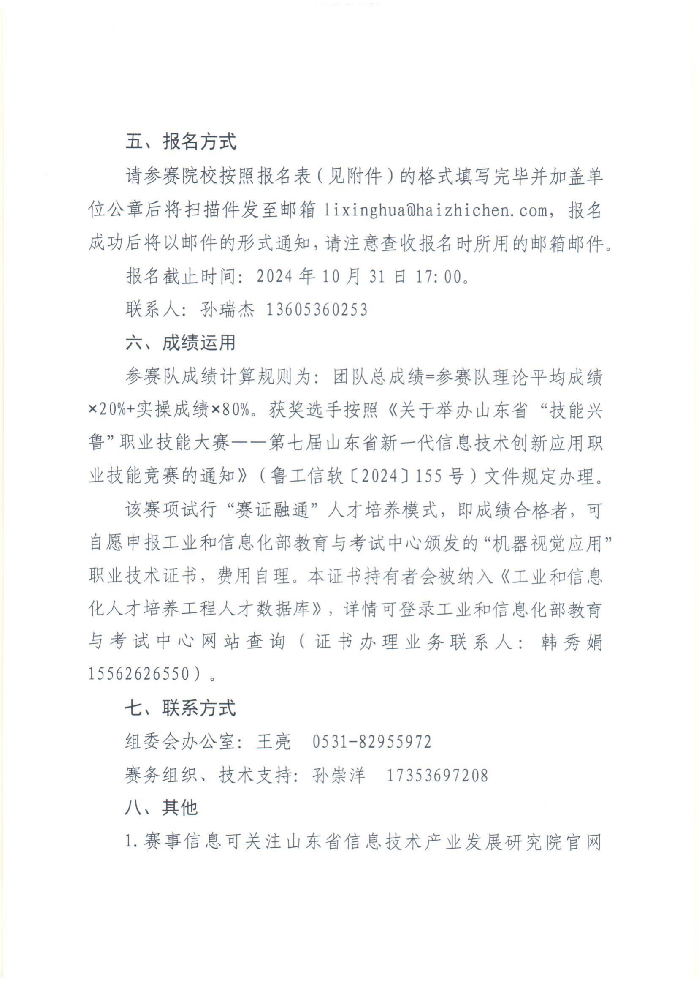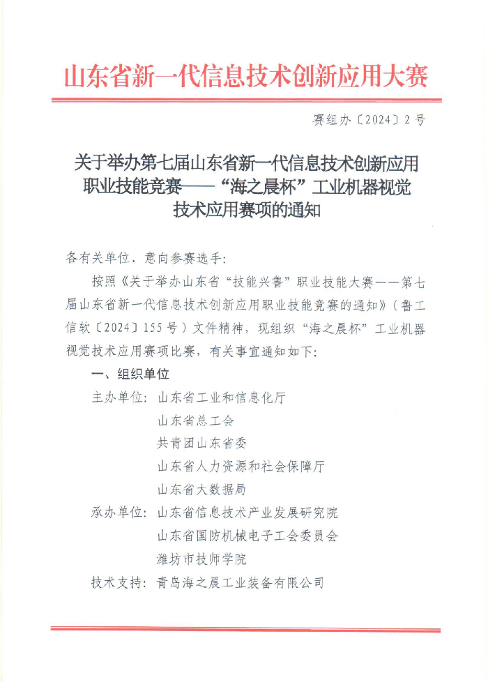 关于举办第七届山东省新一代信息技术创新应用职业技能竞赛——“海之晨杯”工业机器视觉技术应用赛项的通知