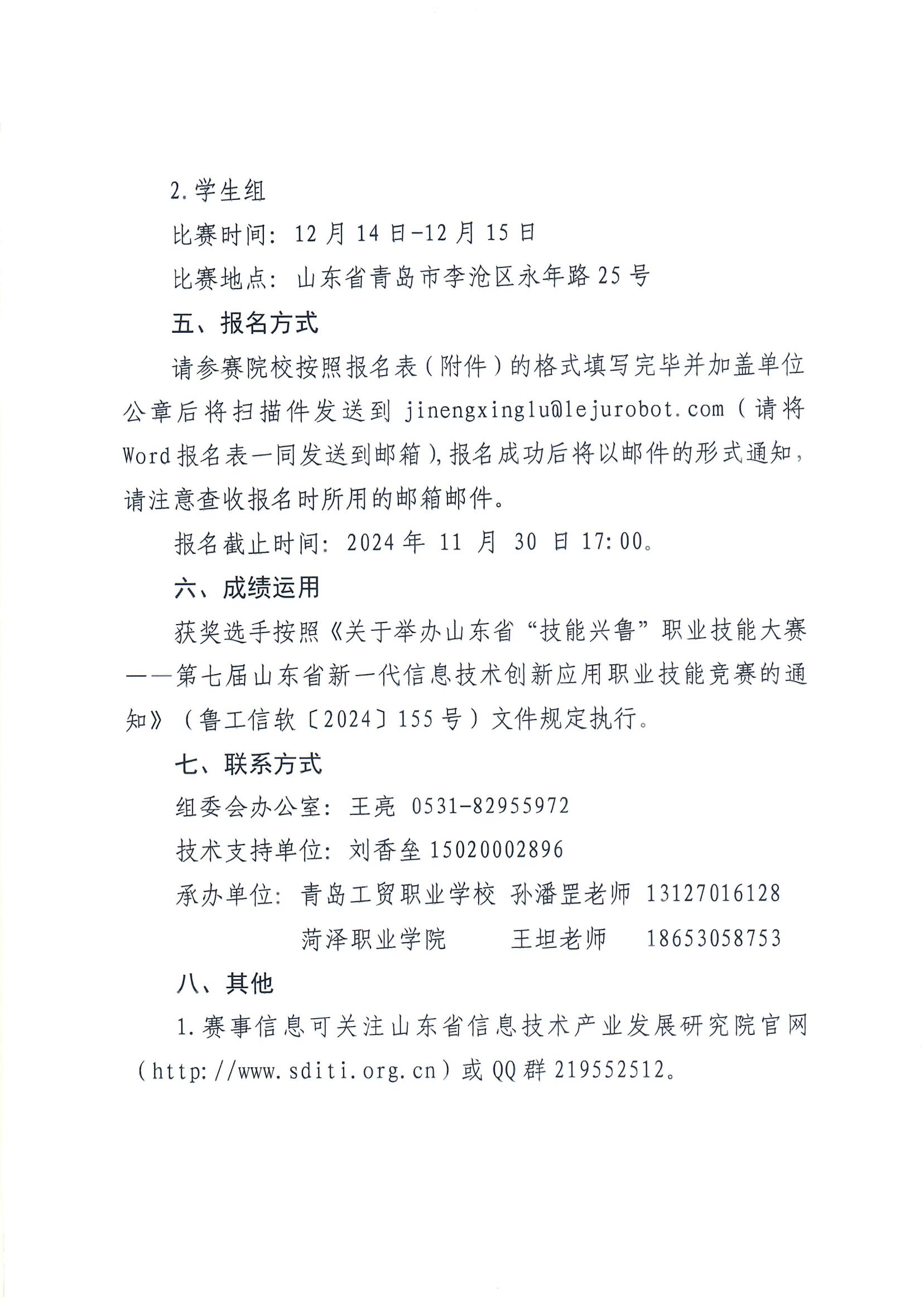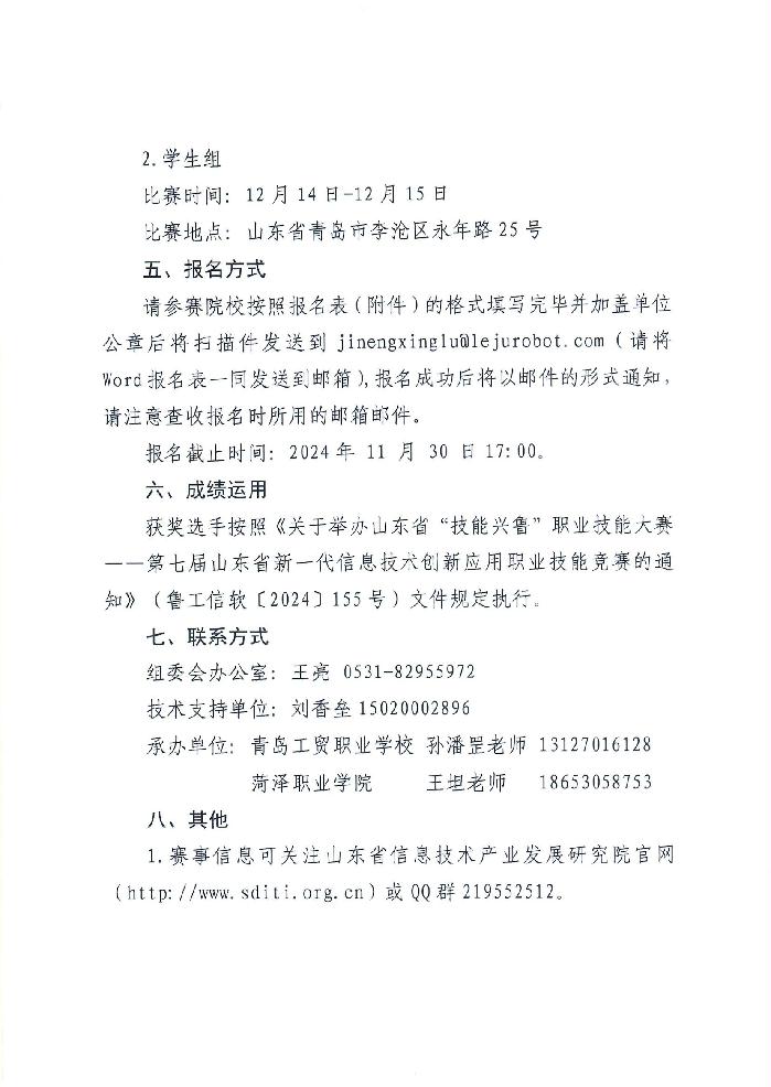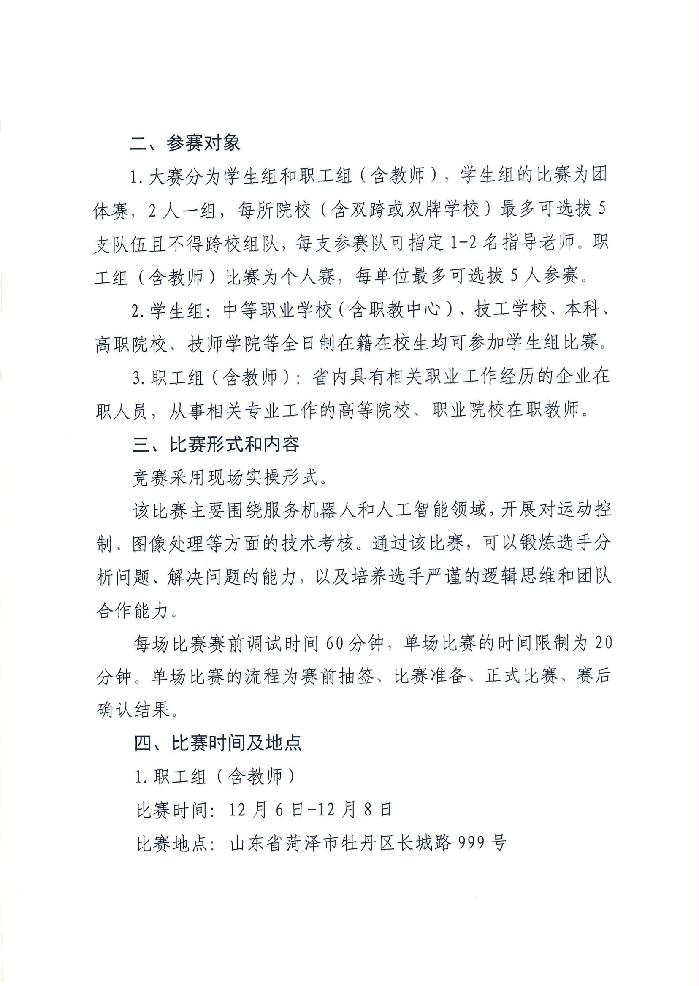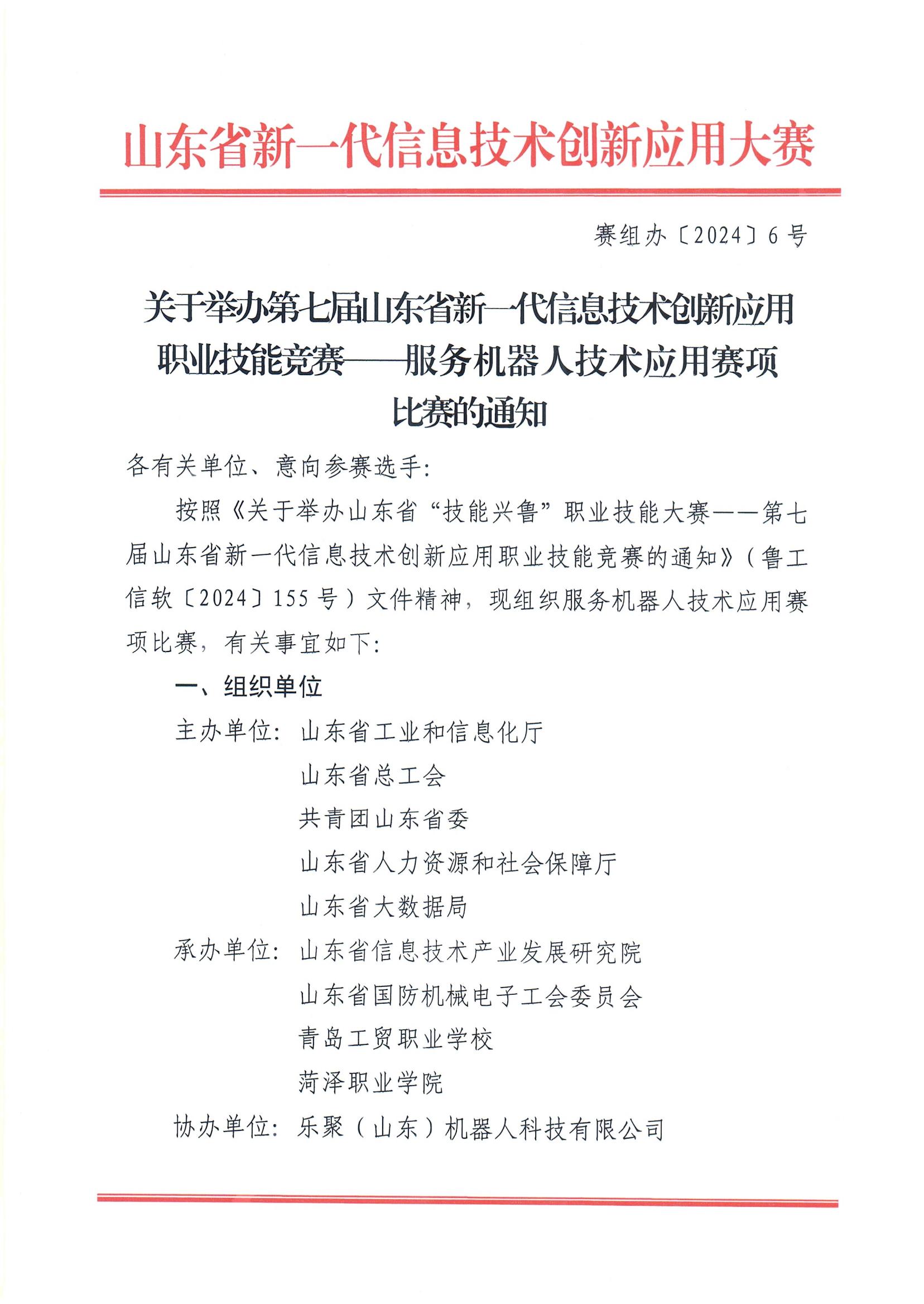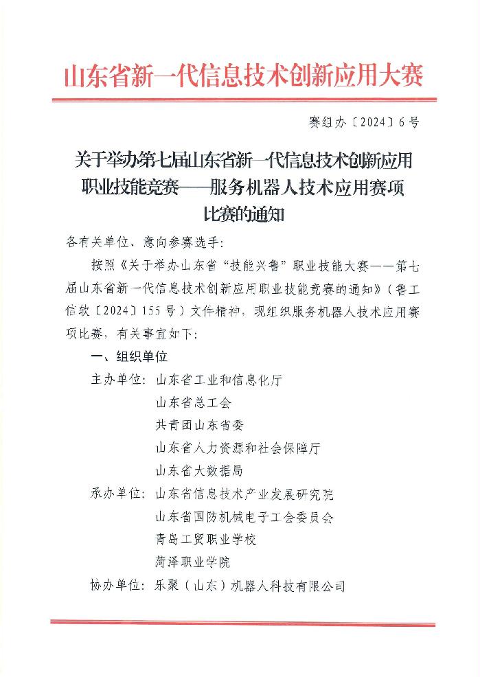 关于举办第七届山东省新一代信息技术创新应用职业技能竞赛——服务机器人技术应用赛项比赛的通知