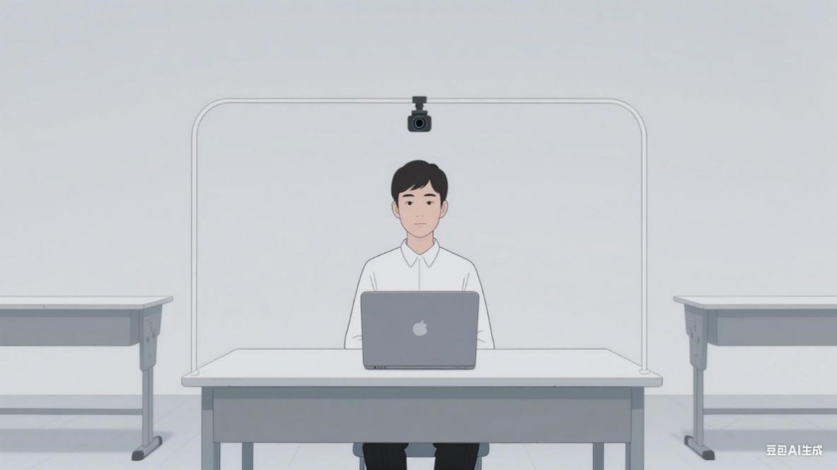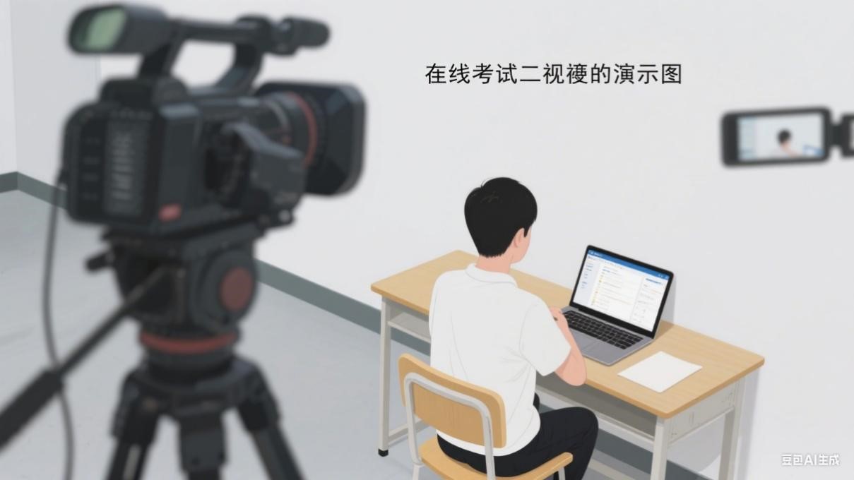 第二机位:可使用带摄像头的电脑B或手机等其他拍摄设备。该设备位于考生后方,需让考生桌面、全身、电脑界面和周边环境全部入镜。